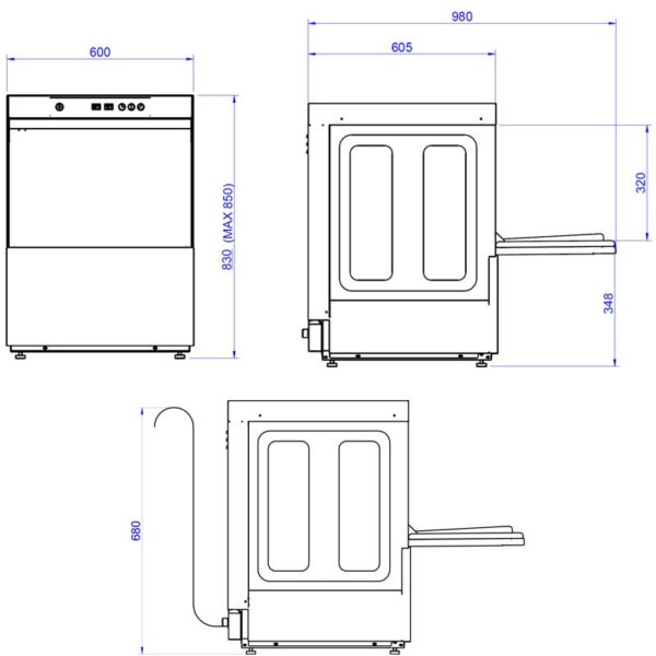 - Dotación: 1 cesta CTE-11, 1 cesta CPE-18 y 1 cubilete para cubiertos CUE-13