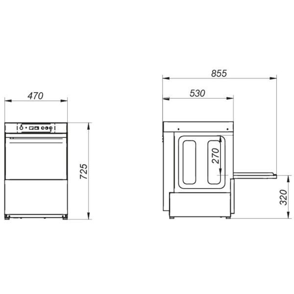 - Dotación: 2 cestas 400 x 400 mm, 1 soporte para platos y 1 cubilete para cubiertos.