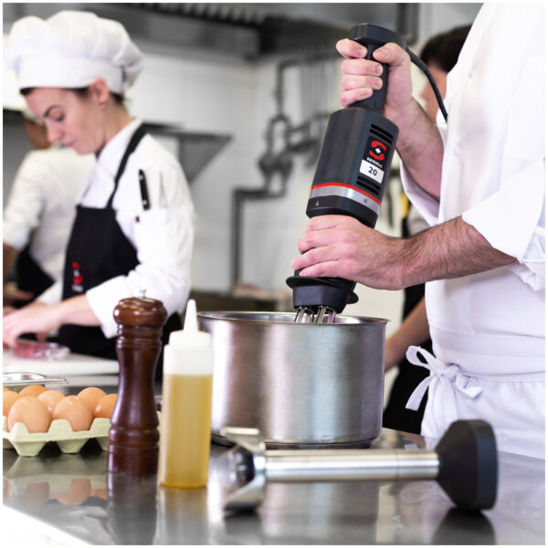 - Brazo triturador extraíble de 250 mm diseñado para un uso continuo en recipientes hasta 12 l.